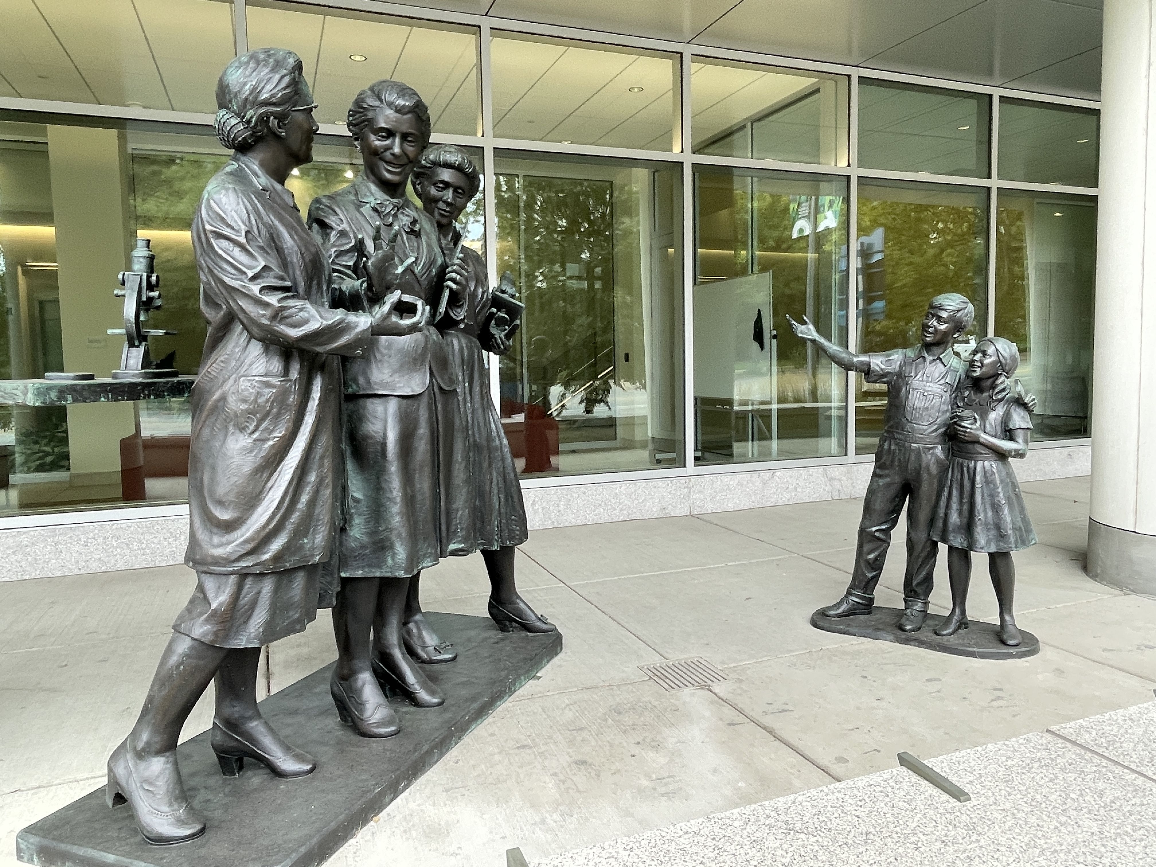 "Adulation: The Future of Science," 2019, historical monument, Grand Rapids Community Legends Project, Grand Rapids, Michigan. Images courtesy of the Historical Marker Database.